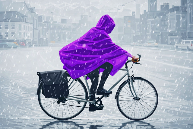 レインコートを着て自転車で移動したよ⤵︎
